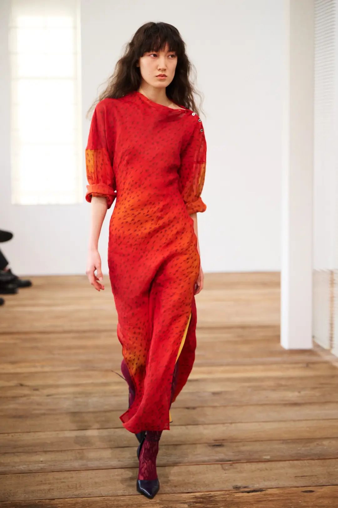 冬青红并非俗艳的朱红,而是北美冬青果实般深邃的“中国红”,如雪地中凝固的火焰,饱满而坚韧。在时装中,一件冬青红丝绒大衣能瞬间点燃冬日的萧瑟,其色泽似玛瑙垂枝,承载着“可贵生命”的象征意义。将其融入毛呢斗篷或皮革手套,赋予造型狩猎女神般的野性张力,又暗藏节庆的欢愉感——这是寒冬里对生命力最炽热的礼赞。
