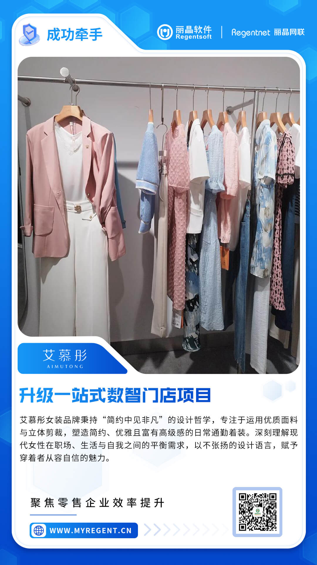 近日,丽晶软件与简约优雅女装品牌艾慕彤正式达成合作。双方将聚焦门店数字化升级,共同打造新一代一站式数智门店解决方案,通过技术赋能品牌线下体验,助力艾慕彤为现代职场女性提供更贴心、更智能的零售服务。