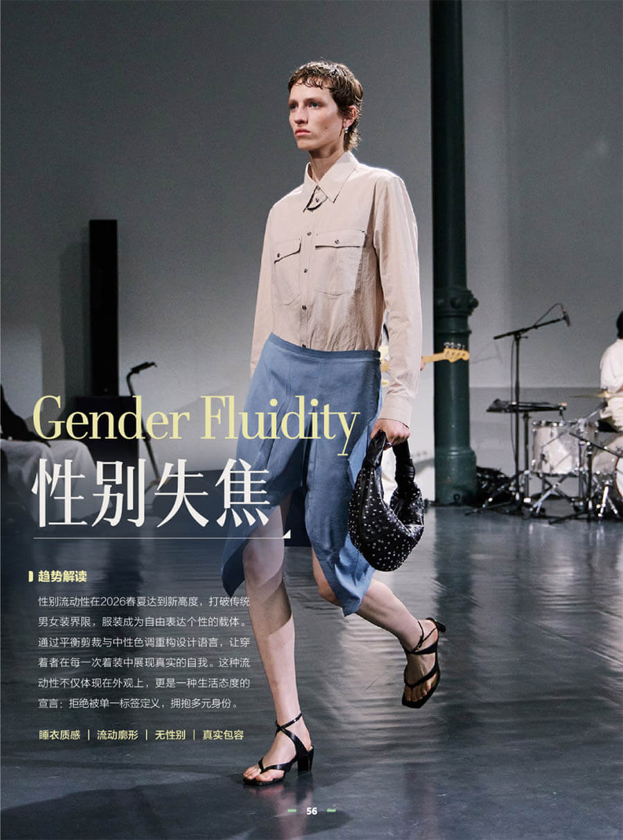性别流动成为常态,服装成为自我表达的开放载体。通过中性剪裁、包容性版型与低饱和度色调,打破传统男女装界限。这不仅是一种风格,更是一种态度:拒绝被定义,拥抱真实的多元自我。