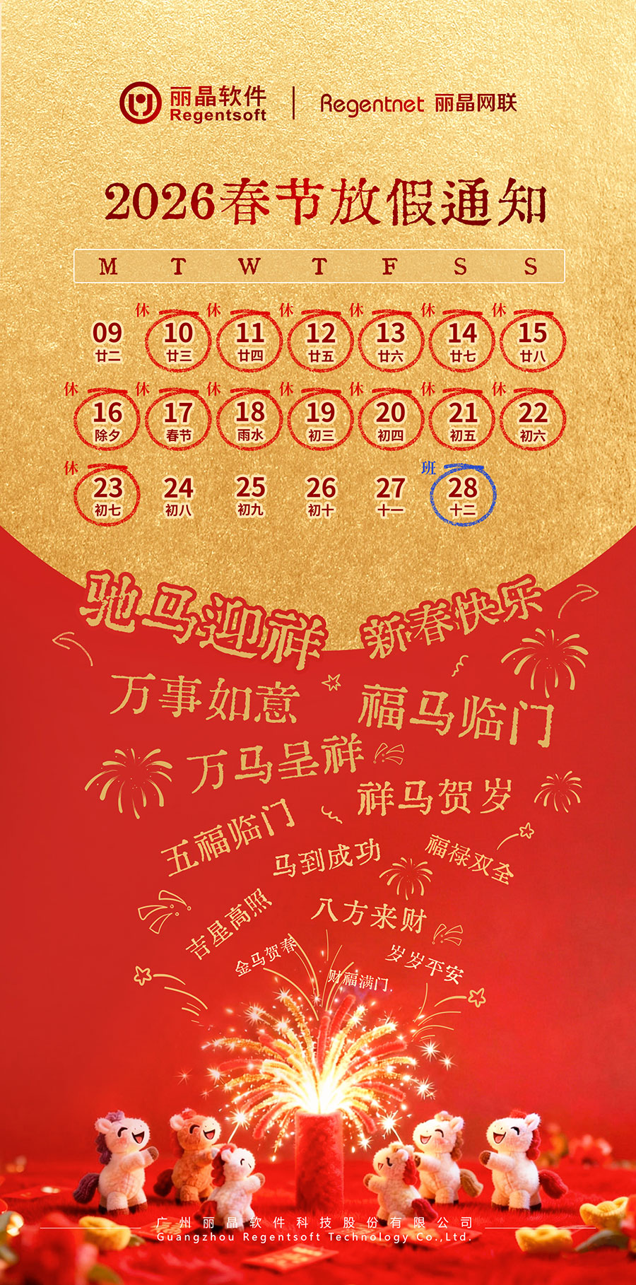 新春佳节将至,感谢您一直以来对丽晶软件的支持与信任。根据国家法定节假日安排,并结合公司实际情况,我司2026年春节放假安排如下: