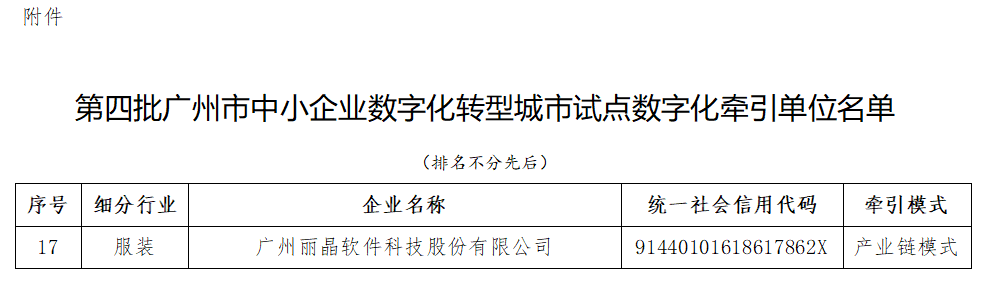 更值得注意的是,本次丽晶软件入选牵引单位,这意味着,选择我们作为数字化转型伙伴的广州市中小企业,有机会享受到政府真金白银的数字化转型专项补贴。